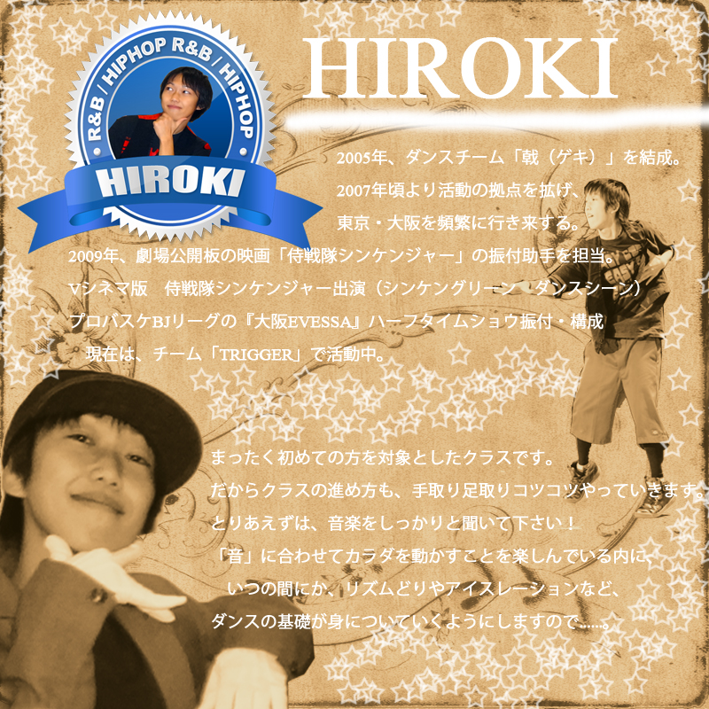 社会人・OL・大学生の方向けnオシャレなヒップホップクラス。R&B・LAstyle大阪市の初心者が楽しむスタジオダンシングシティのHirokiのページ。