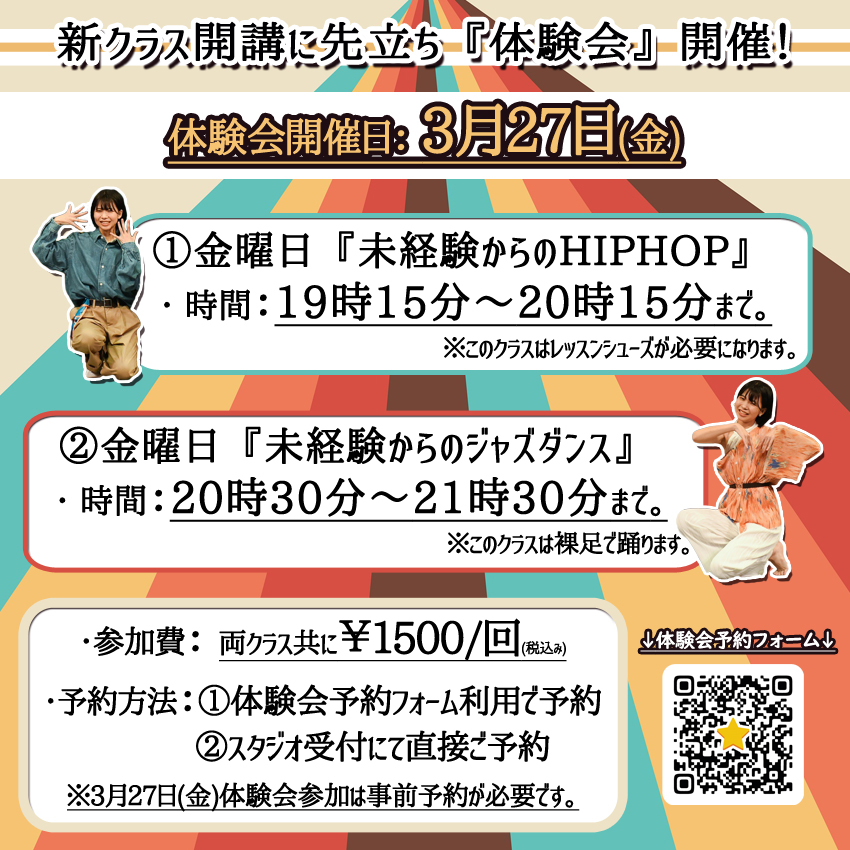 ※2クラス連続で体験も可能。